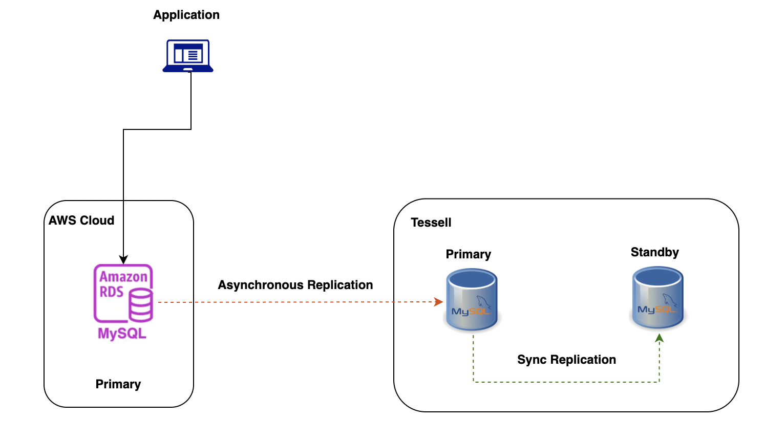 * During cutover, stop application writes to RDS, wait for replication to catch up, and start application pointing to Tessell MySQL endpoint.