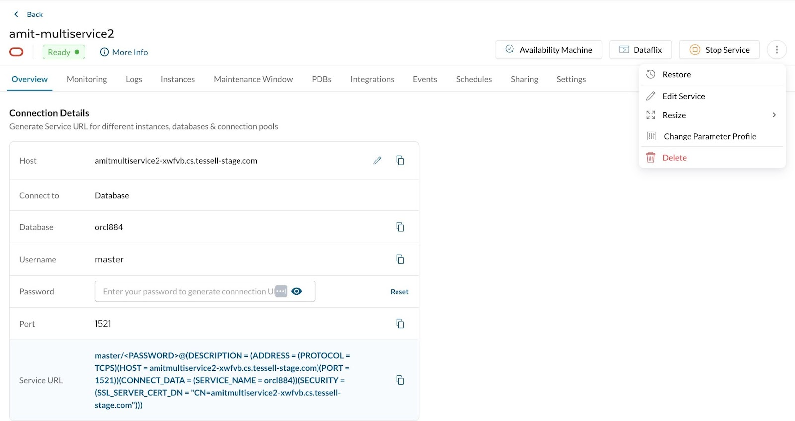 * Select to delete the service. For more information, see [Delete the service](https://docs.tessell.com/tessell/tessell-for-oracle/db-services/managing-services#delete-the-service).